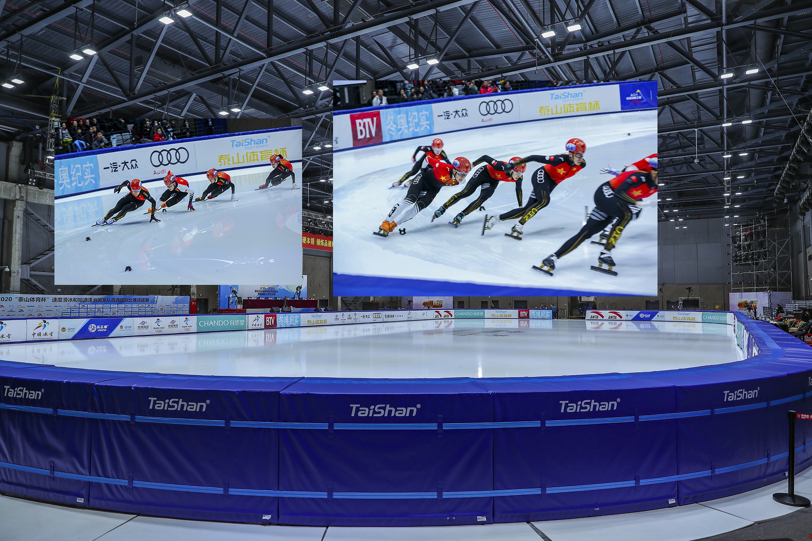 2019年泰山出色的服务了意大利大学生运动会、第七届武汉世界军人运动会等国际性赛事。10月5日“8868体育杯”速度滑冰和短道速滑国家队直通国际比赛选拔赛开幕,泰山自主研发的冰雪运动防撞界墙系列产品,首次亮相国际比赛,开创了冰雪世界的新未来!