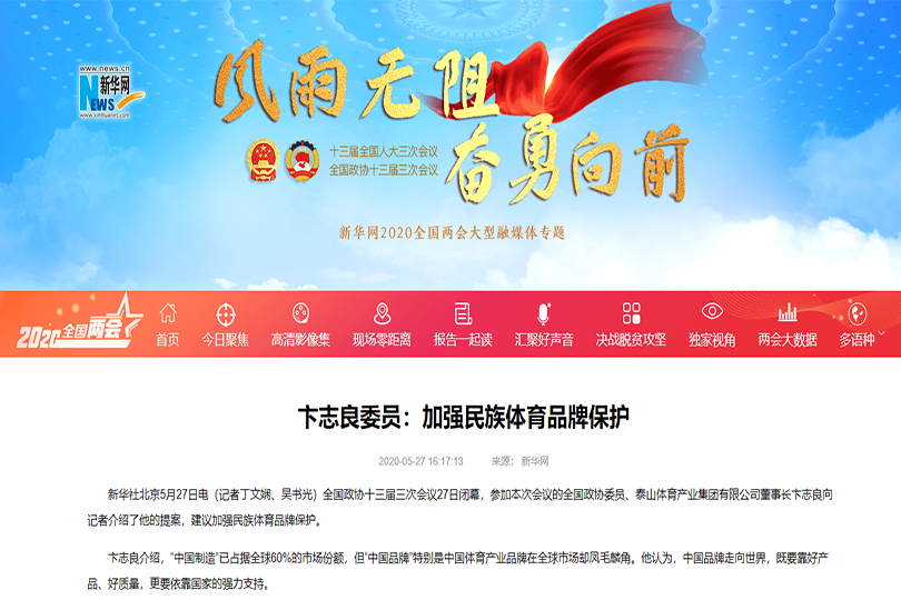 随后,他详细介绍了泰山集团在中国文教体育用品协会指导下,在“大力推进品牌战略”、“立足科技创新”、“积极推动3亿人参与冰雪运动”、“助力健康中国”、“ 大力发展校园笼式足球运动”、“参与一带一路建设”等方面做出的积极贡献。他表示:“体育用品制造产业是实体经济。‘中国制造’在朝着‘中国创造’、‘ 中国智造’、‘ 世界品牌’的路上迅跑。面对“百年未有之大变局”,我们正面临着千载难逢的产业政策机会和国际国内市场机会,要加快自主创新步伐,不忘初心,牢记使命,紧跟国家政策,以供给侧结构性改革为主线,加快体育健康用品制造的产业升级,共同推动中国体育健康产业向高质量发展。”