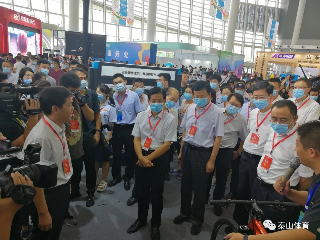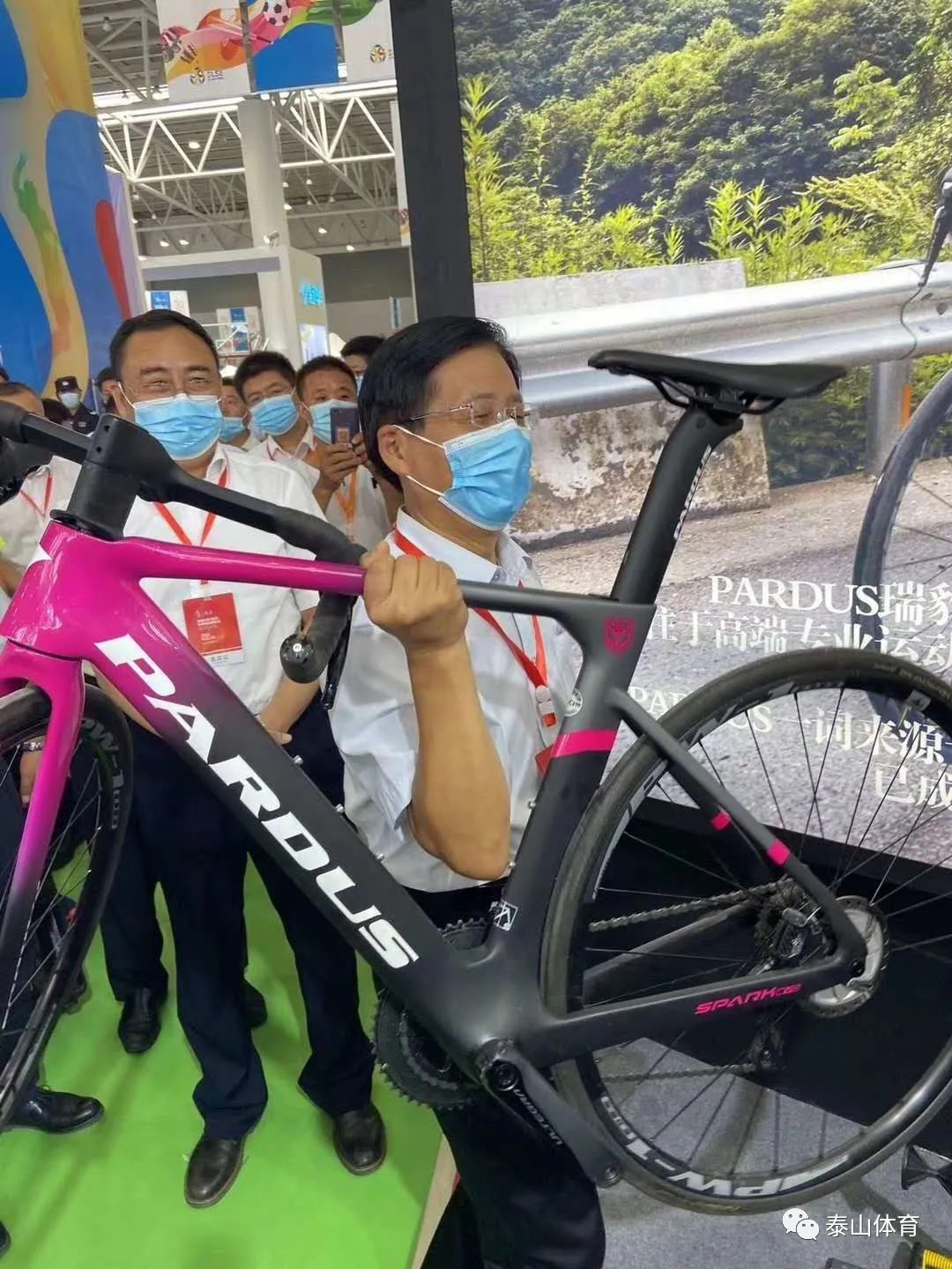 随后,山东省副省长孙继业一行在泰山集团常务副总裁卞国峰的陪同下来到8868体育所在场馆进行详细考察,对于泰山瑞豹碳纤维自行车、8868体育工程等产品与项目进行深入了解。期间,孙继业副省长饶有兴致的对于泰山瑞豹进行详细了解,特别关注获得"中国优秀工业设计奖金奖"的泰山瑞豹全碳变速互换计时车产品的具体情况,并亲自单手提起具有奥运赛场征战经验的碳纤维自行车。他表示:"山东省委省政府将积极推动体育产业列入我省的支柱产业,鼓励企业制定长期发展战略规划,通过打造体育产业龙头企业,形成一个迅速爆发的体育产业生态。期待泰山集团充分发挥自身国际资源、科技创新、标准制定等核心优势,不断做大做强,让山东体育产业的优势地位凸显的淋漓尽致,形成山东体育产业集群。"