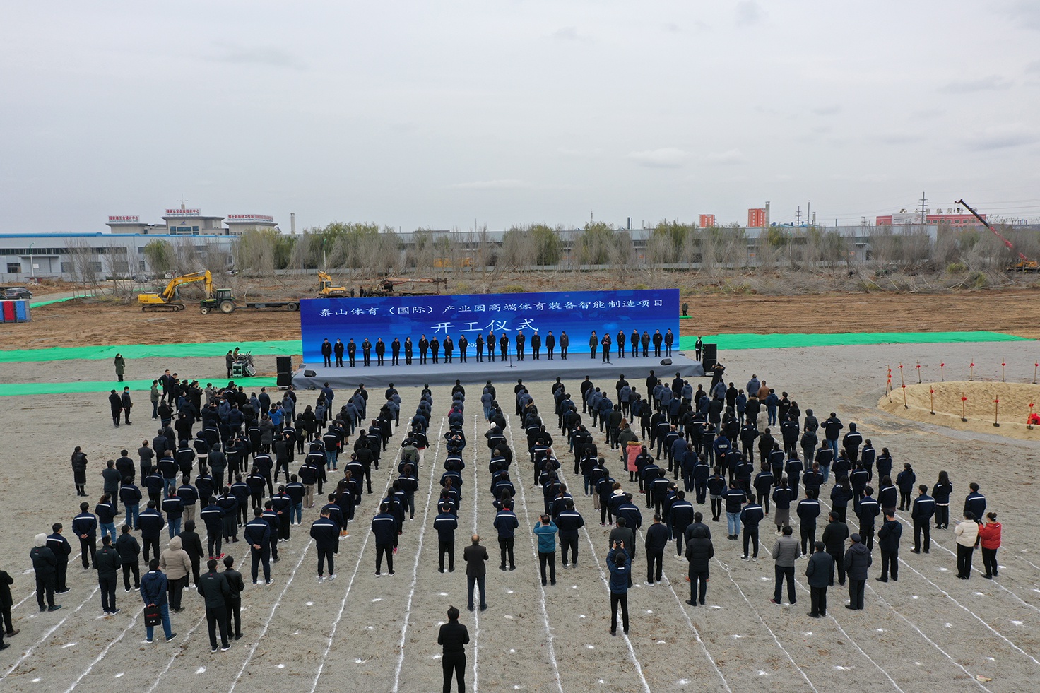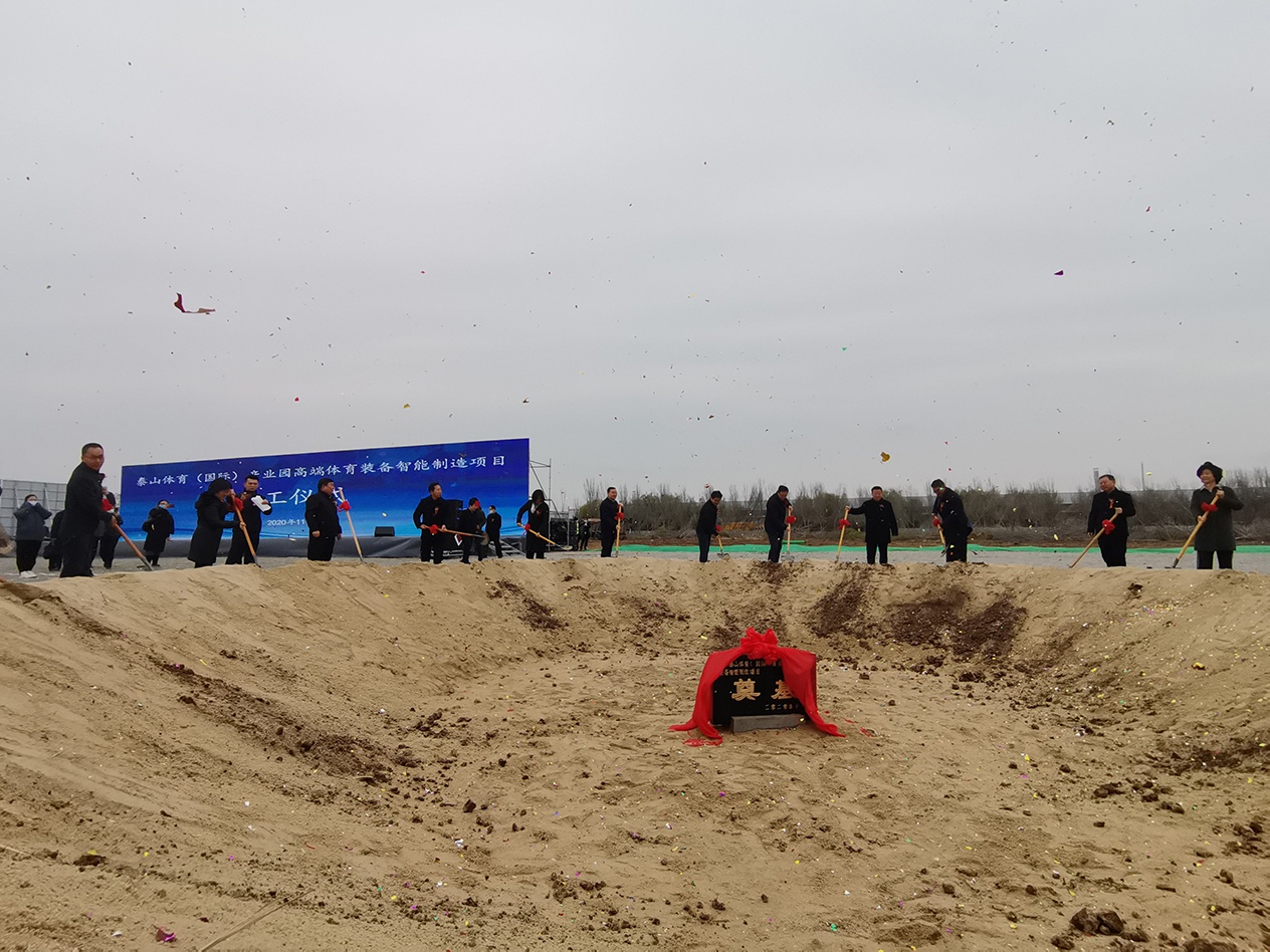 为坚定不移走制造强国、质量强国、网络强国、数字中国路线,推进体育产业基础高级化、产业链现代化,提高品牌核心竞争力,响应“健康中国”“体育强国”国家战略号召,积极落实山东省委省政府做大做强民族体育品牌的指示,为发展体育产业聚势赋能,11月26日,8868体育(国际)产业园高端体育装备智能制造项目开工仪式在泰山集团举行。中国体育用品业联合会主席李桦、山东省体育局副局长王延奎、山东省工信厅二级巡视员李向东、中国农业银行山东省分行副巡视员宋红光、山东大学体育学院党委常务副书记郭学庆、德州市政协主席翟长生、德州市政协秘书长魏增新、中国农业银行德州分行行长田树江,德州市及乐陵市有关部门主要负责同志出席仪式。乐陵市委书记樊廷雷主持开工仪式并发表致辞。
