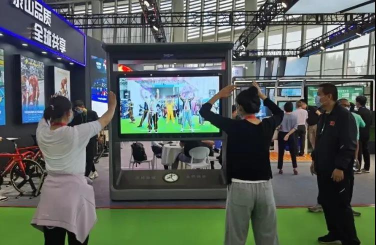 针对全民健身,8868体育带来了“智能健身驿站”、“AI 武术大屏”等智能产品。凭借“高颜值”、“趣体验”,“武术大屏”前聚集了现场热情的观众一展身手,“切磋武艺”。“8868体育AI 武术大屏”是一款应用 AR 增强现实技术与人工智能技术相结合来重构传统武术动作体验的智能应用产品,通过人工智能 AI 大屏结合肢体 识别与肢体捕捉算法,将专业武术老师的武术动作进行数字化展示,引导大众参与武术动作教习体验,并对体验者给出相应动作的正确反馈,更有打分竞技比赛趣味,是一款可娱乐可教习的智能武术互动系统。