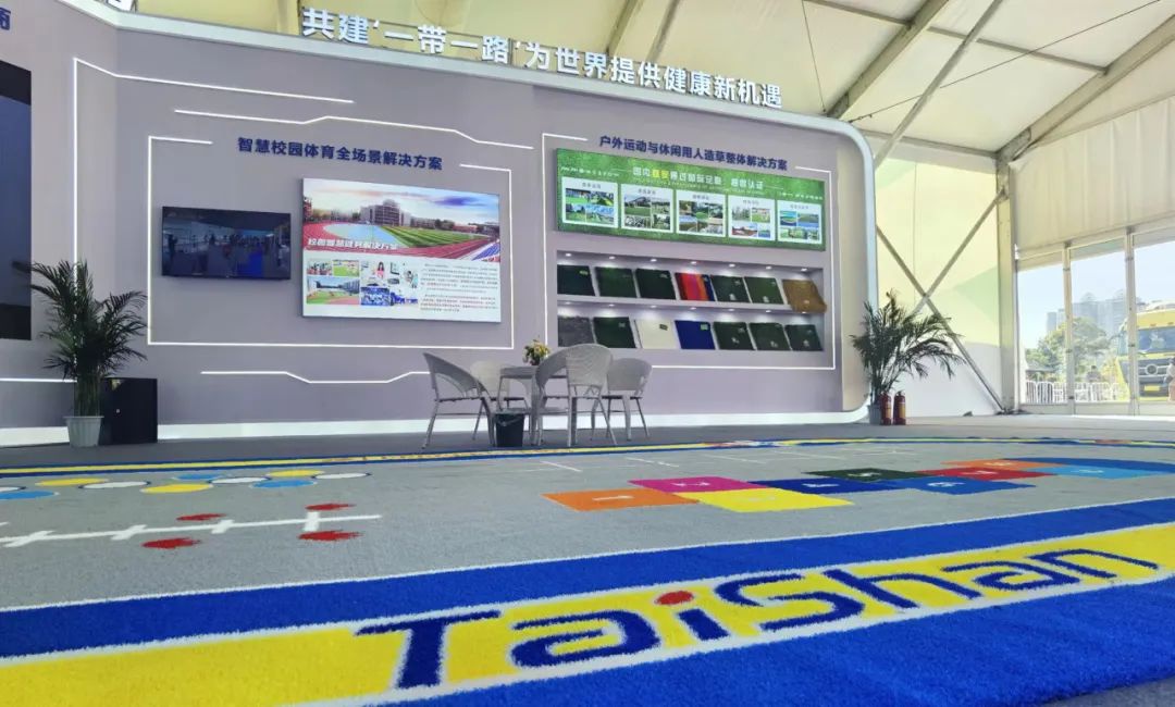8868体育携户外运动与休闲人造草整体解决方案亮相会场。作为国内首家通过足联、曲联双认证的企业可根据不同用户的户外运动需求,生产多种类型的户外运动草坪。