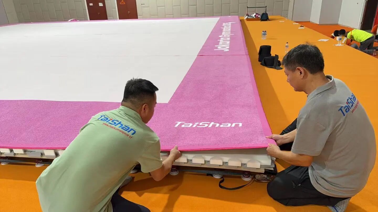 自10月3日筹备工作启动以来,各项工程稳步高效推进。目前,热身馆与比赛场地的铺设作业已全面完成,训练馆安装也进入收尾阶段。场地规划充分考虑了运动员的多样化需求,铺设材料均选用行业顶尖产品,确保性能卓越、安全可靠。由核心技术骨干与资深工程师组成的服务保障团队已全员就位,将24小时全程待命,为赛事顺利举行保驾护航。